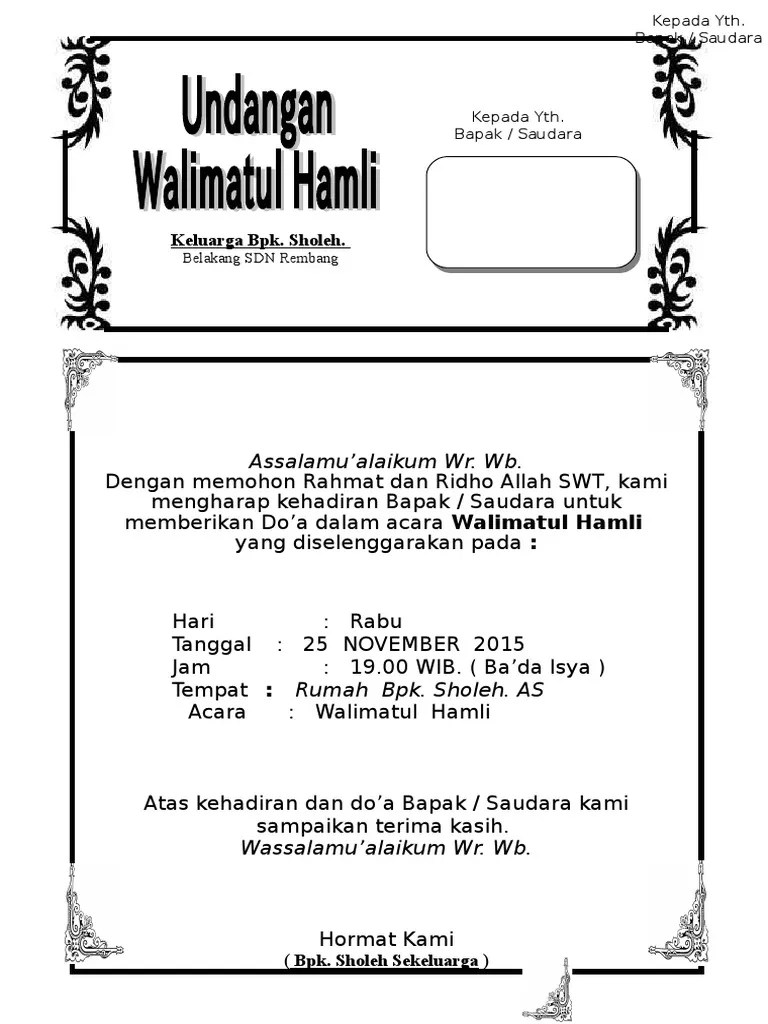 Walimatul Hamil / Undangan 7 Bulanan Doc Nasi : We did not find results for:. Check spelling or type a new query. Maybe you would like to learn more about one of these? We did not find results for: