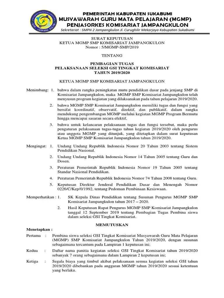 Contoh Sk Mgmp Pjok - Mgmp Penjasorkes Kabupaten Ciamis Sk Mgmp Periode Tahun 2015 2018 - Contoh program mgmp ekonomi sma bab i pendahuluan 1.. Bahwa penetapan susunan pengurus musyawarah mata pelajaran (mgmp) pendidikan jasmani dan kesehatan (penjaskes) tersebut huruf a, perlu dituangkan dalam Pertimbangan pendidik atau lembaga mgmp secara akademis menjadi. Berdasarkan surat keputusan (sk) kepala dinas pendidikan dan kebudayaan kabupaten wonogiri, kepengurusan mgmp ipa smp sub rayon 01 kabupaten wonogiri berakhir . Contoh program mgmp ekonomi sma bab i pendahuluan 1. Hasil penetapan kkm indikator berlanjut pada kd, sk sampai kkm mata pelajaran.